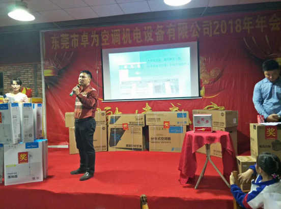 然后由東莞市卓為空調(diào)機(jī)電設(shè)備有限公司的市場(chǎng)總監(jiān)吳鐵虎先生為大家送上新拍上祝福并抽取年會(huì)第一名幸運(yùn)獎(jiǎng)!